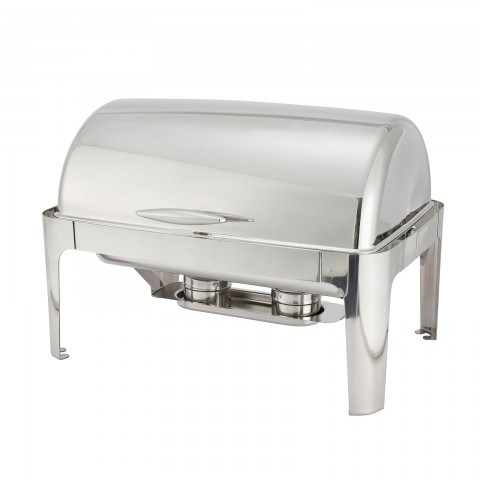 Madison Chafer, 8 qt., full size, rectangular, stainless steel frame, roll top with 180° opening & 90° intermediate opening, includes food pan, water pan, and fuel holders, mirror finish (Qty Break = 1 each)