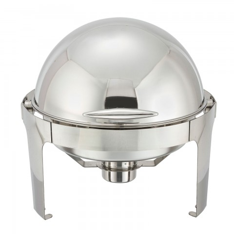 Madison Chafer, 6 qt., round, stainless steel frame, roll top with 180° opening & 90° intermediate opening, includes food pan, water pan, and fuel holder, mirror finish (Qty Break = 1 each)