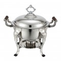 Crown Chafer, 6 qt., round, dome cover, wooden handles, stainless steel, includes food pan, water pan, and fuel holder, mirror finish (Qty Break = 1 each)