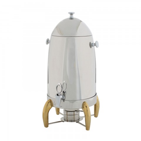 Virtuoso Coffee Urn, 5 gallon, with fuel holder, handle and gold legs, extra-heavyweight stainless steel, mirror finish (Qty Break = 1 set)