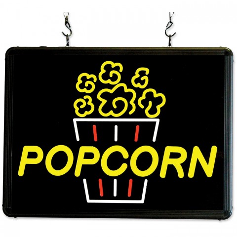 Benchmark Ultra-Bright Merchandising Sign, "Popcorn", LED back lighting, extruded aluminum frame, (2) 3-ft. hanger chains, 12 volt converter, 18 watts, NEMA 1-15P, 120v/60/1, 1.5 amps, NEMA 1-15P (Qty Break = 1 each)
