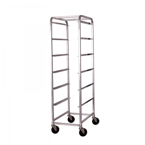 Bus Box Cart, 6 tiers (stacked) Bus Box or lug box, 18-5/8"W x 26"D x 70-1/4"H, 1" tube frame, 14 gauge aluminum, 5" dia. swivel casters, KD, NSF (Qty Break = 1 each)