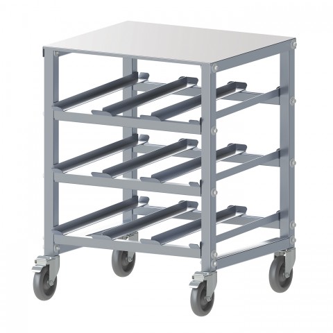 Can Storage Rack, 3-tier, mobile, under-counter, accommodates (36) #10 cans or (45) #5 cans, load from front or rear, heavy duty, reinforced frame and base, aluminum, 3" swivel casters (2 with brakes), KD, NSF (Qty Break = 1 each)