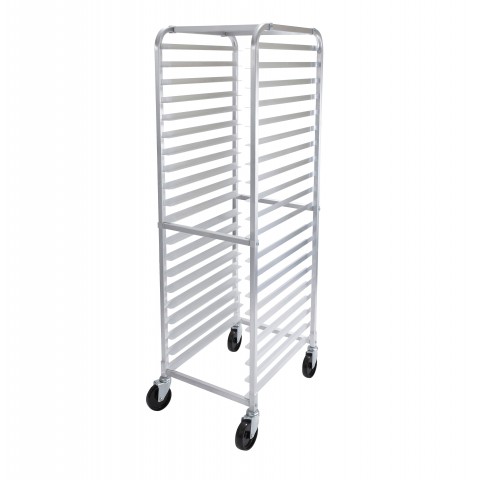 Sheet Pan Rack, mobile, full height, (20) 18" x 26" or (40) 18" x 13" sheet pans capacity, 700 lb. capacity, (4) 5" swivel rubber casters, 3" runner spacing, aluminum, KD, NSF (Qty Break = 1 each)