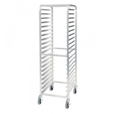 Sheet Pan Rack, mobile, full height, (20) 18" x 26" or (40) 18" x 13" sheet pans capacity, 500 lb. capacity, (4) 5" swivel rubber casters, (2) with brake, 3" runner spacing, aluminum, KD, NSF (Qty Break = 1 each)