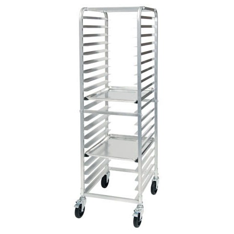 Sheet Pan Rack, mobile, full height, (20) 18" x 26" or (40) 18" x 13" sheet pans capacity, 800 lb. capacity, (4) 5" swivel rubber casters (2 with brakes), 3" runner spacing, welded, aluminum, NSF (Qty Break = 1 each)