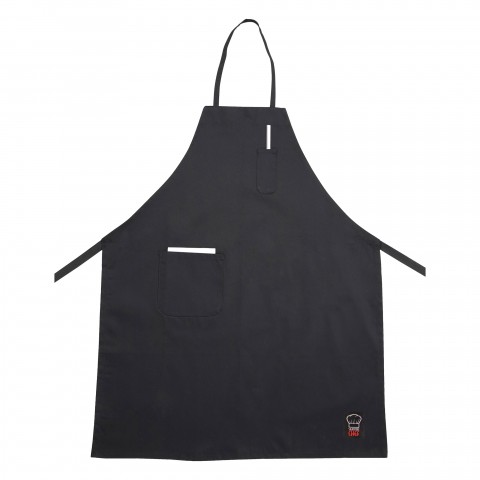 Bib Apron, 33" x 26", full-length, with (2) pockets, machine wash and dry, 65/35 poly-cotton blend, Signature Chef, black (Qty Break = 12 each)