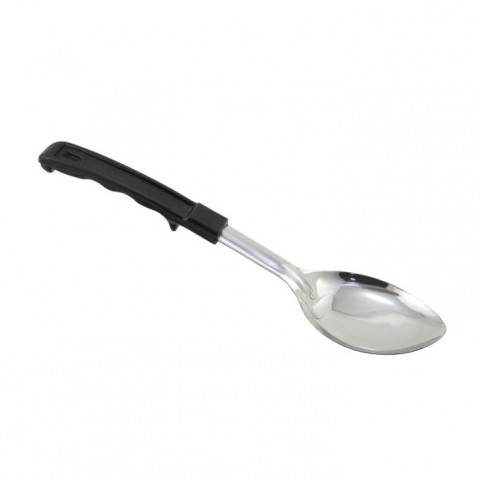Basting Spoon, 11", solid, stop hook, black polypropylene handle, 1.2mm thick, stainless steel (Qty Break = 12 each)