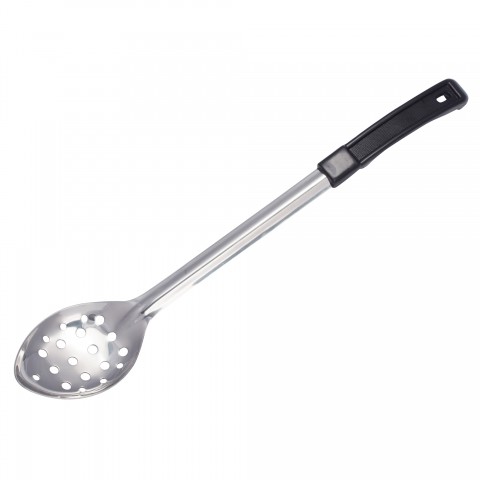 Basting Spoon, 15" long, perforated, with black plastic handle, stainless steel, Prime, NSF (Qty Break = 12 each)
