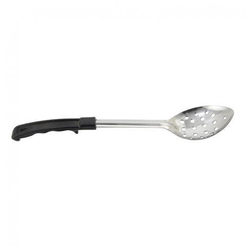 Basting Spoon, 11", perforated, stop hook, black polypropylene handle, 1.2mm thick, stainless steel (Qty Break = 12 each)