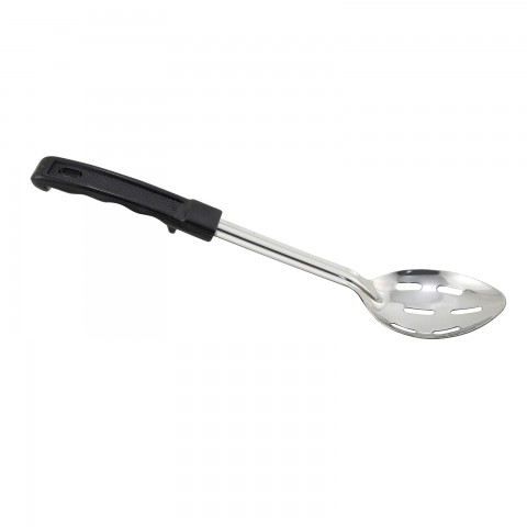 Basting Spoon, 13", slotted, stop hook, black polypropylene handle, 1.2mm thick, stainless steel (Qty Break = 12 each)