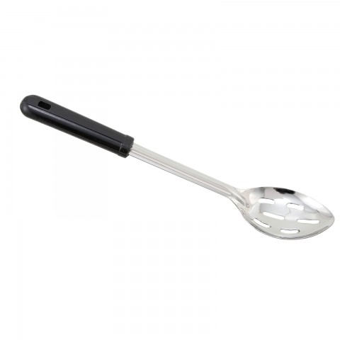 Basting Spoon, 13", slotted, black rounded Bakelite handle, 1.2mm thick, stainless steel (Qty Break = 12 each)
