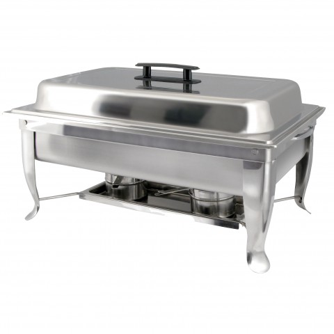 Bellaire Chafer, 8 qt., full size, rectangular, with folding stand, polished cover with lid clips, includes water pan, food pan and (2) fuel holders, stainless steel (Qty Break = 1 each)