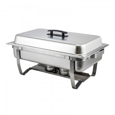 Chafer, 8 qt., full size, rectangular, with folding stand, built-in cover clips, includes water pan, food pan, cover and (2) fuel holders, stainless steel (Qty Break = 1 each)