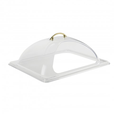 Dome Cover, side-cut, 1/2 size, 13-1/2" x 11" x 4-1/2"H, fits 1/2 size steam table/poly pans, polycarbonate, NSF (Qty Break = 12 each)