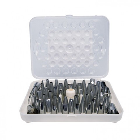 Cream Nozzle Set, 52-piece, includes storage box, a standard coupler and (2) metal flower nails, rust resistant, stainless steel (Qty Break = 6 set)