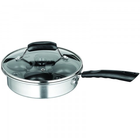 Egg Poacher, 8" dia. x 3-1/3"H, non-stick, includes: tempered glass lid, sauce pan, and tray, (4) cups with cool touch handles, induction ready, dishwasher safe, stainless steel, non-stick coating (Qty Break = 6 each)