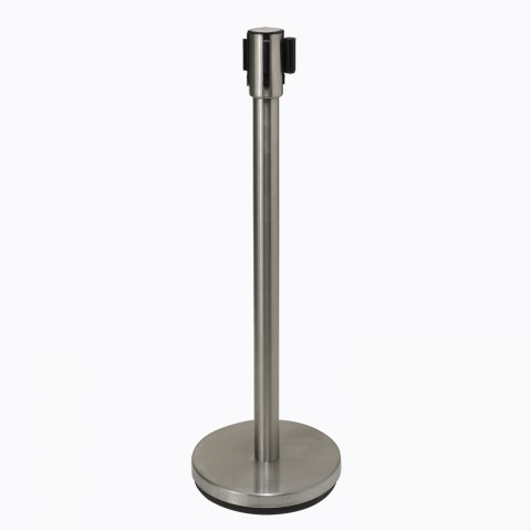 Crowd Control Guidance System, 35-1/2"H, 34" post, 6-1/2' retractable belt, heavyweight base, stainless steel (Qty Break = 2 each)