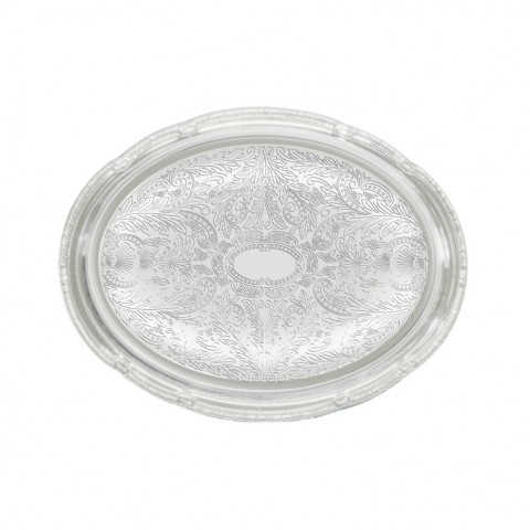 Serving Tray, 14-3/4" x 10-1/2", oval, gadroon edge with traditional engraving, chrome plated (hand wash only) (Qty Break = 12 each)