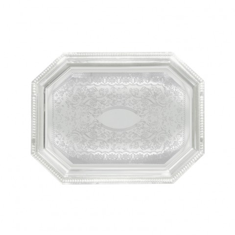 Serving Tray, 17" x 12-1/2", octagonal, gadroon edge with traditional engraving, chrome plated (hand wash only) (Qty Break = 12 each)