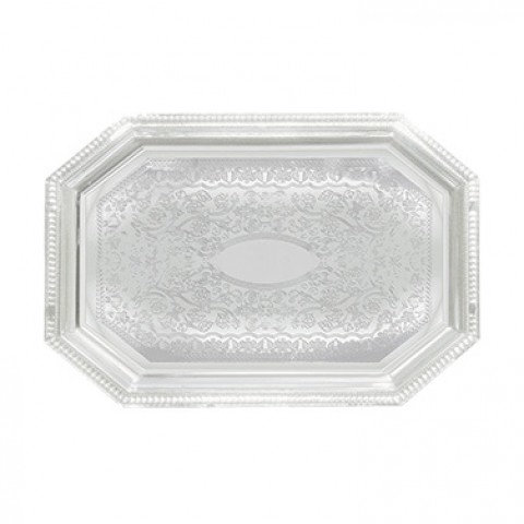Serving Tray, 20" x 14", octagonal, gadroon edge with traditional engraving, chrome plated (hand wash only) (Qty Break = 12 each)