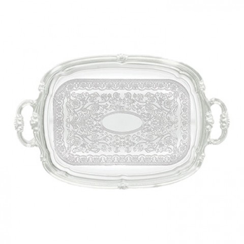 Serving Tray, 19-1/2" x 12-1/2", rectangular, with handles, gadroon edge with traditional engraving, chrome plated (hand wash only) (Qty Break = 12 each)