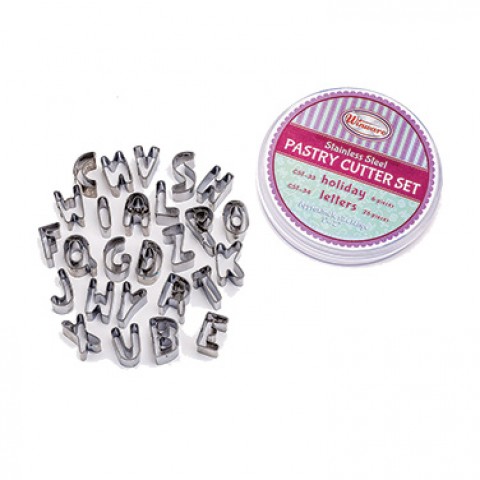 Cookie Cutter Set, 26-piece, 1"-2" dia., letters, includes storage container, rust resistant, stainless steel (Qty Break = 12 set)
