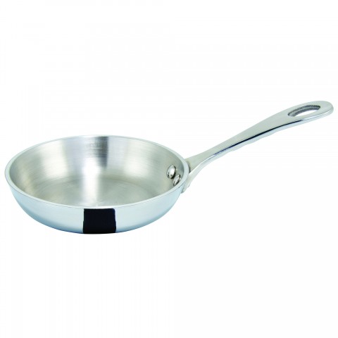 Mini Fry Pan, 5 oz., 4" dia., round, with riveted handle, induction ready, tri-ply heavy duty bottom with aluminum core, 18/8 stainless steel (Qty Break = 6 each)