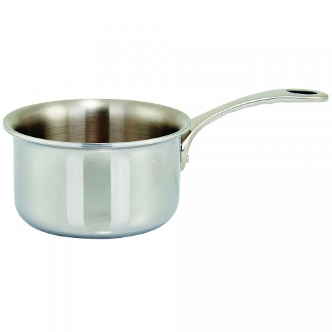 Mini Sauce Pan, 11 oz., 3-1/2" dia., round, with riveted handle, induction ready, tri-ply heavy duty bottom with aluminum core, 18/8 stainless steel (Qty Break = 6 each)