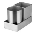 Sugar Packet Holder Set, includes: (1) 2" dia. round holder (DDSG-103S), (1) 2" x 2" square holder (DDSG-102S) and (1) rectangular base tray, stainless steel (Qty Break = 12 each)