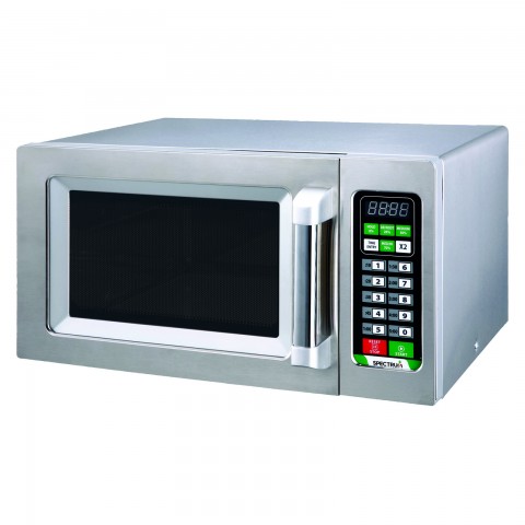 Spectrum™ Commercial Microwave, .9 cubic feet capacity, 1450 W input power, touch control, accommodates 12" dia. platter, motor driven bottom antenna, backlit LED display, interior oven light, (3) customizable key beep volumes, stainless steel interior, 120v/60/1-ph, 12 amp, 1000 watts, NEMA 5-15P, ETL-Sanitation, cULus (Qty Break = 1 each)