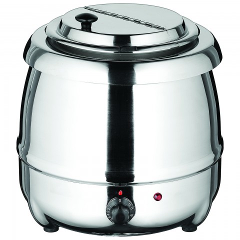 Soup Warmer, electric, 10 qt., 13-3/16" dia. x 15"H, adjustable heat control, hinged no-drip lid, removable 18/10 stainless steel bain marie inner pot, double wall construction, with suction cup label holder, stainless steel, 120v/60/1-ph, 3.3 amp, 400 watts, ETL-Sanitation, cETLus (Qty Break = 1 each)