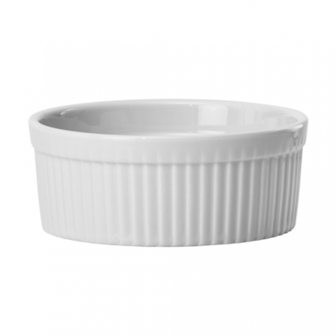Ramekin, 10 oz., 4-1/4" dia. x 1-3/4"H, Round, Fluted, Porcelain, White, (Qty Break = 2 dozen)