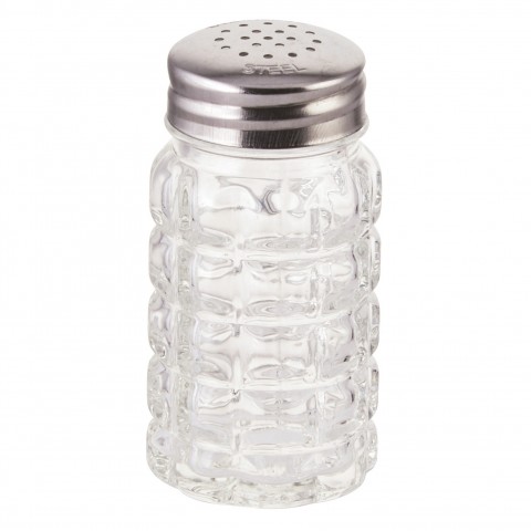 Glass Shaker, 2 oz., classic, with stainless steel flat top, glass (Qty Break = 12 dozen)