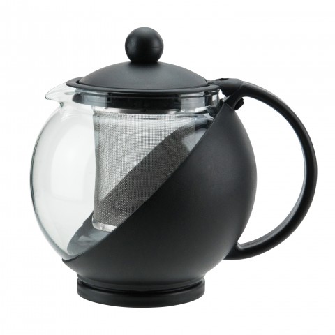 Teapot, 25 oz., 6"L x 4-3/4"W x 5-1/2"H, removable fine mesh stainless steel strainer, glass carafe, plastic body (Qty Break = 48 each)