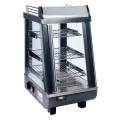 Heated Display Merchandiser, 13-1/2"W, countertop, includes: (3) adjustable shelves, (1) removable water pan, (2) hinged doors, lighted front display, visible thermometer gauge, adjustable thermostat from 85°F to 195°F, 120v/60/1-ph, 7.6 amp, 800 watts, cETLus, ETL-Sanitation (Qty Break = 1 set)