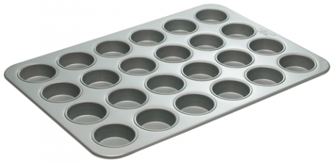 Texas Muffin Pan, 17-7/8" x 25-7/8" OA, Holds (24) 3-3/16" dia. muffins, 5.6 oz. each, 4 rows of 6, wire in rim, 26 gauge aluminized steel, silicone glazed, PFOA & PTFE Free (QTY Break = 12 each)