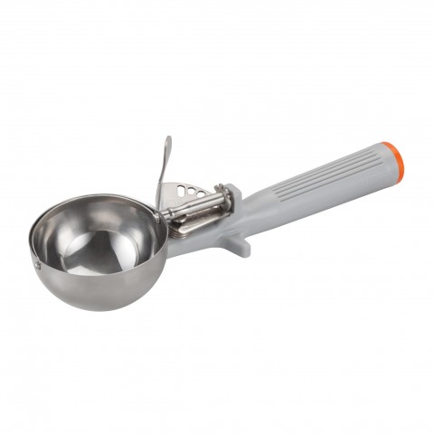 Deluxe Disher, 4 oz., size 8, 2-7/8" dia., round, one piece handle reinforced with stainless steel rod, easy release, 18/8 stainless steel, gray, NSF (Qty Break = 12 each)