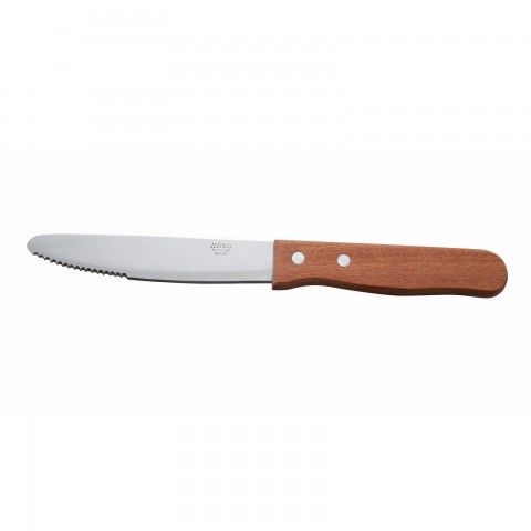 Jumbo Steak Knife, 10" O.A.L., 5" heavy duty blade, round tip, stainless steel blade, oak wood handle (Qty Break = 12 dozen)