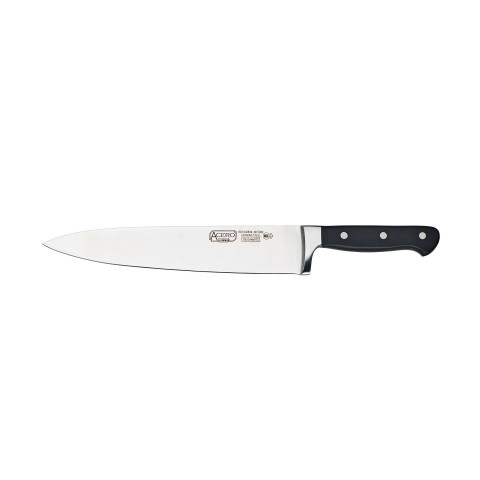 Acero Chef Knife, 10" blade, triple riveted, one piece, full tang, forged, German high carbon stainless steel, injection molded POM handle, black, NSF (Qty Break = 6 each)