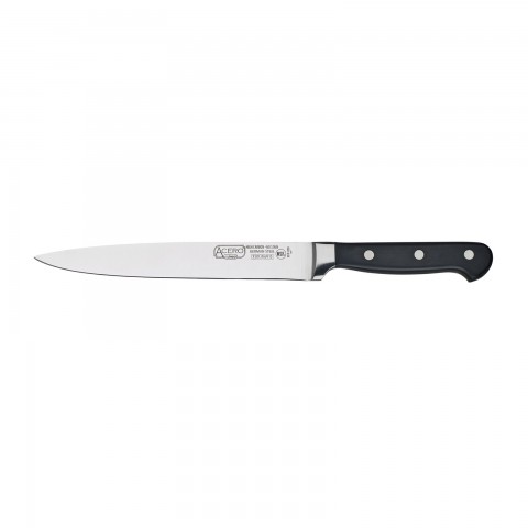 Acero Slicer, 8" blade, triple riveted, one piece, full tang, forged, German high carbon stainless steel, injection molded POM handle, black, NSF (Qty Break = 6 each)