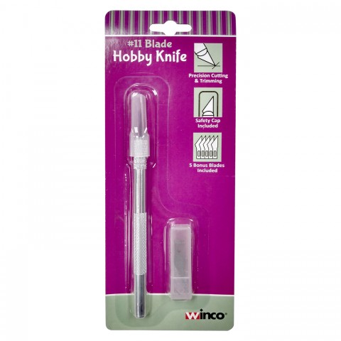 Hobby Knife, 5-3/4"L, fine point, safety cap, (5) bonus blades, manganese steel, aluminum handle (Qty Break = 12 each)