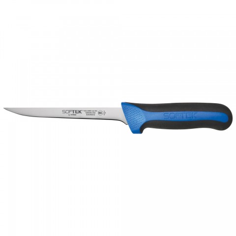Sof-Tek™ Boning Knife, 6" blade, narrow, high carbon, non-slip black and blue TPR handle, X50CrMoV15 German steel, NSF (Qty Break = 6 each)