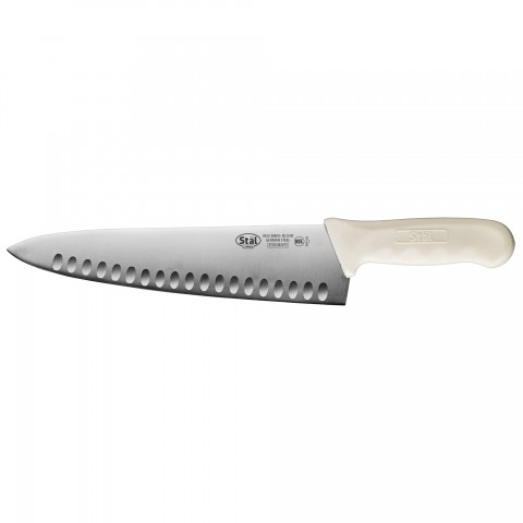 Chef's Knife, 10" blade, hollow ground edge, stamped, high carbon, no-stain German steel, polypropylene handle, Stal, white, NSF (Qty Break = 6 each)