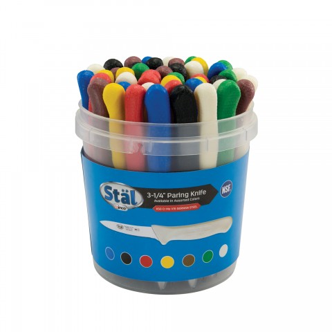 Paring Knife, 3-1/4" blade, bulk pack, with protective finger guard, stamped, high carbon, no-stain German steel, slip-resistant, polypropylene handle, Stal, (7) assorted colors, NSF (46 each per pack) (Qty Break = 1 pack)