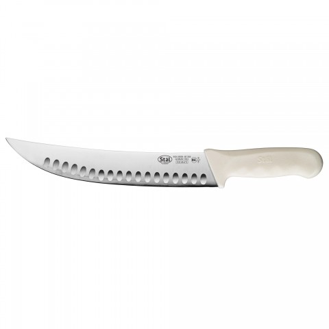 Cimeter Knife, 9-1/2" blade, hollow ground edge, stamped, high carbon, no-stain German steel, polypropylene handle, Stal, white, NSF (Qty Break = 6 each)