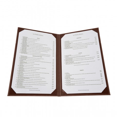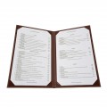 Menu Cover, double, legal size, holds 8-1/2" x 14" paper, leather-like, interior picture corners or top/bottom magnets, brown (Qty Break = 10 each)