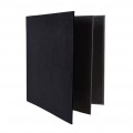Menu Cover, four views, letter size, holds 8-1/2" x 11" paper, leather-like, interior picture corners or top/bottom magnets, black (Qty Break = 10 each)