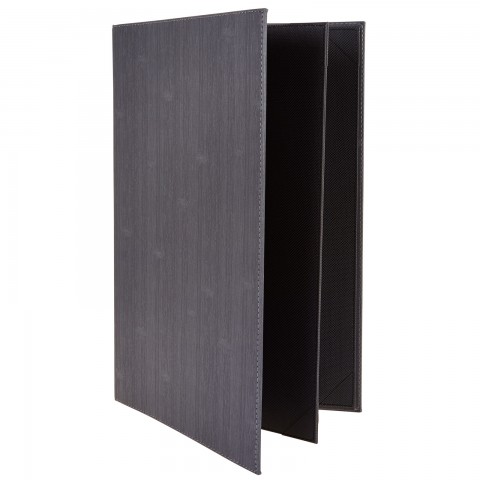 Menu Cover, four views, legal size, holds 8-1/2" x 14" paper, leather-like, interior picture corners or top/bottom magnets, gray (Qty Break = 10 each)
