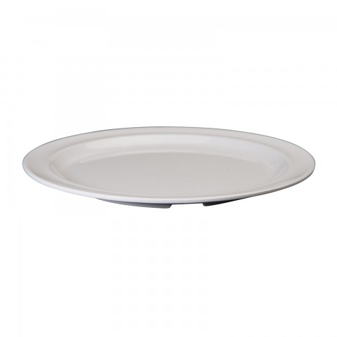 Plate, 9" dia., round, heat resistant up to 212°F/100°C, dishwasher safe, melamine, white, NSF (Qty Break = 4 dozen)